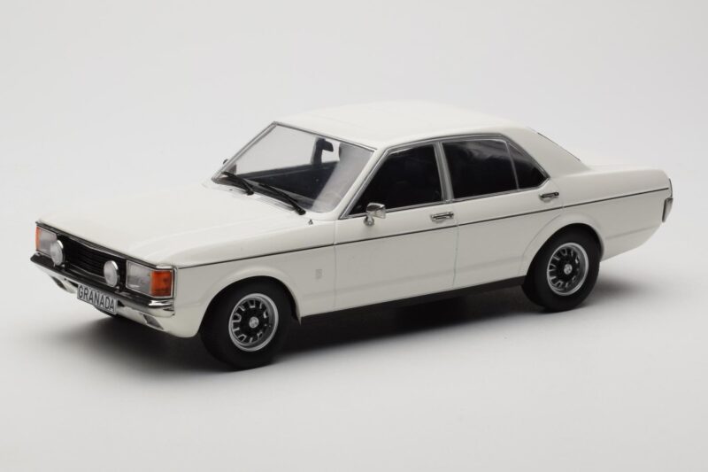 A 1:18 scale model measures approximately 25-28 cm (approximately 10-11 inches). The Ford Granada Mk1 Bel MCG 1:18 is perfect for display in a glass cabinet or on a shelf.