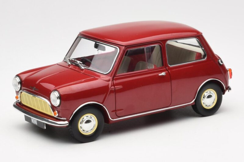 The Morris Mini Minor Rdeč Kyosho 1:18 is crafted from Kovina. Die-cast zinc alloy body with detailed plastic parts, rubber tires, and high-quality paint finish. Die-cast models are known for their weight, durability, and realistic feel.